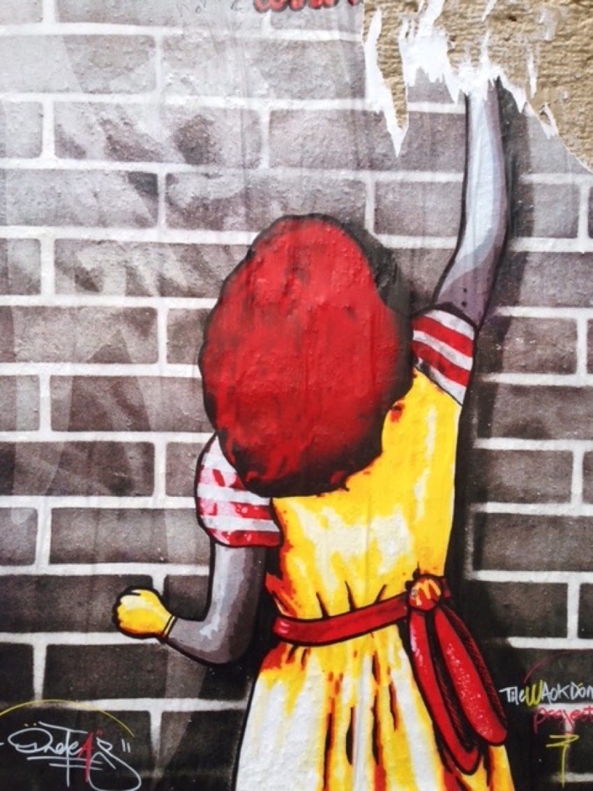 In the summer of 2014 in Paris, I wandered through the city and began to notice drawings scratched on walls, graffiti lurking in corners, wall paintings in a funky nook, and fragments of murals on a crowded street. Once I began looking more closely at things, I noticed them everywhere—their shapes, colors, jumping from something close-up, to further away.